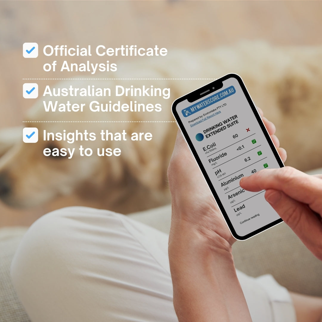We provide you with a clean and simple comparison of your water results against local and federal safety benchmarks, such as the NHMRC 2025 Drinking Water Guidelines, as well as provide the Certificate of Analysis straight from the selected Lab. This will give you a thorough breakdown of any contaminants detected and how they may be affecting your health, and provide non-biased treatment recommendations.
